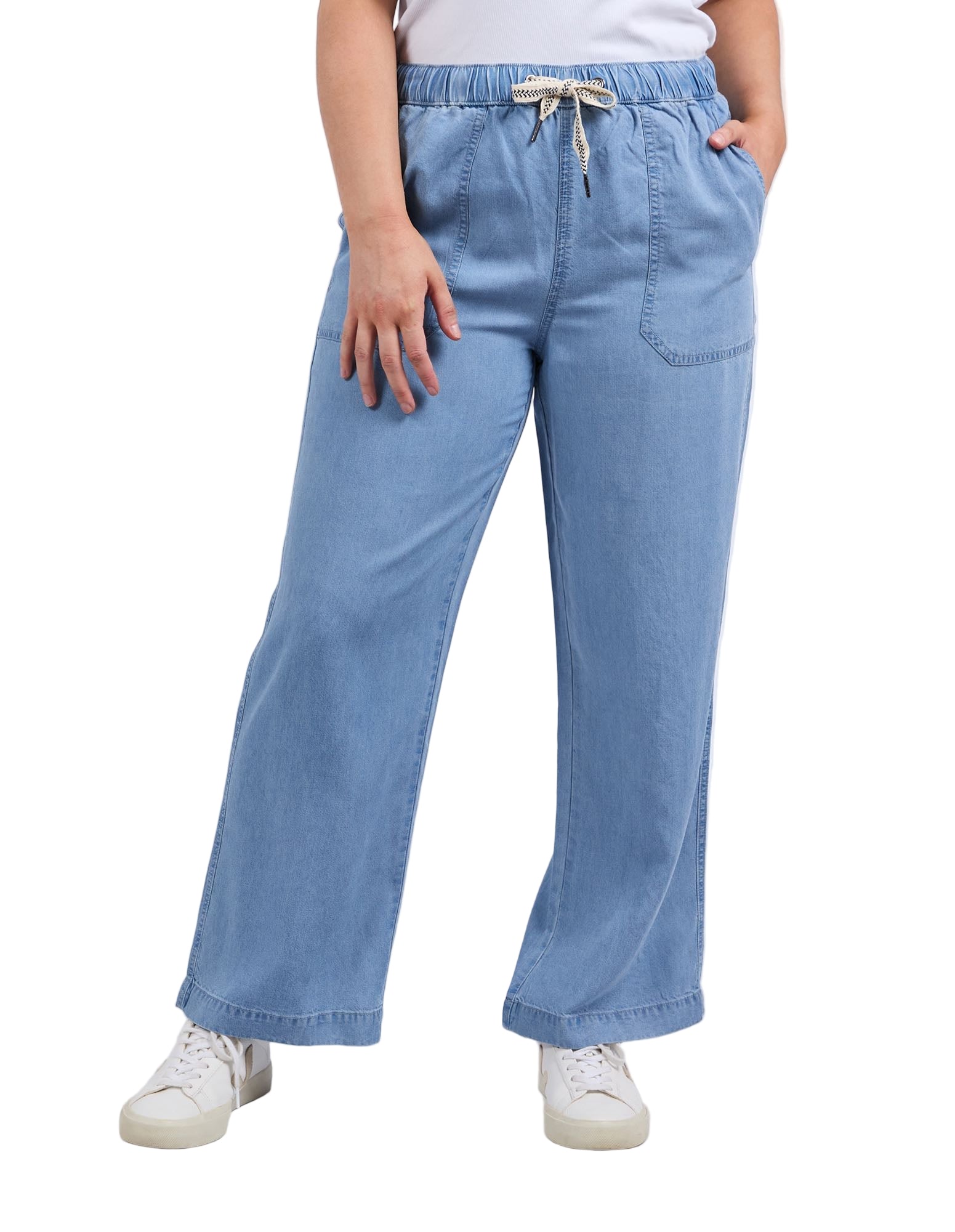 The Payton Chambray Pants bring effortless denim style in a lightweight chambray for extra comfort. Featuring a drawstring waist and patch pockets these pants are versatile and lovely.