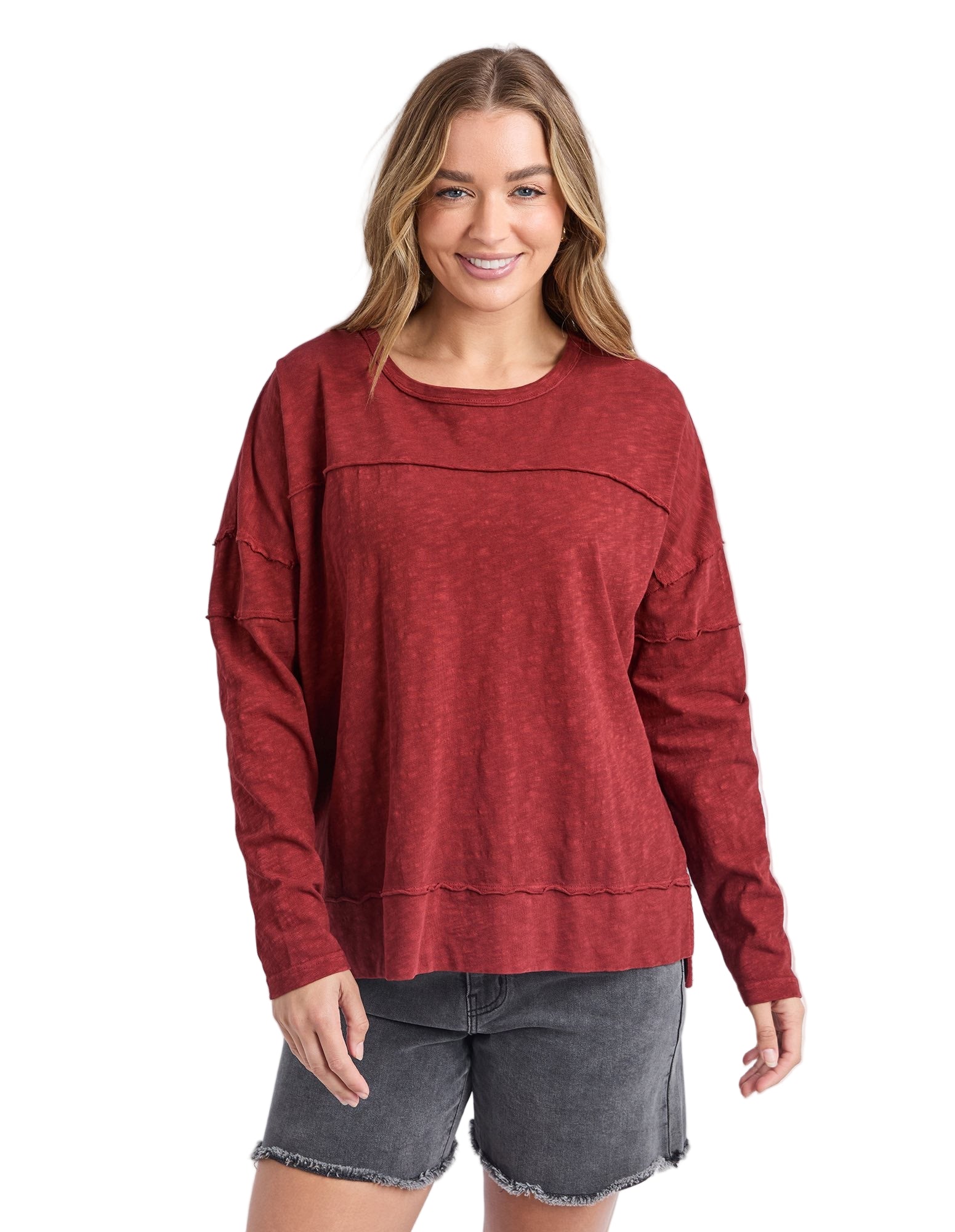 It features a crew neck with exposed stitching. It's made from super soft 100% cotton slub fabric so it's light weight and drapes perfectly on the body.