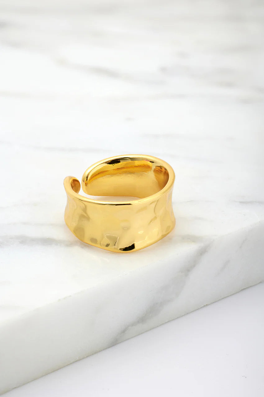 This ring is a versatile and charming addition to your jewellery collection, exuding a subtle elegance and flair. The softly hammered texture adds a touch of uniqueness and sophistication, making the Bianca Ring a perfect statement piece for any occasion. Whether worn alone as a standalone statement or paired with other rings for a trendy stacked look, the Bianca Ring will effortlessly elevate your everyday style.
