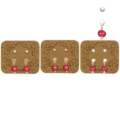 Ear Mints - Sprinkles Stud/Ball Drop Earring Set Dark Pink