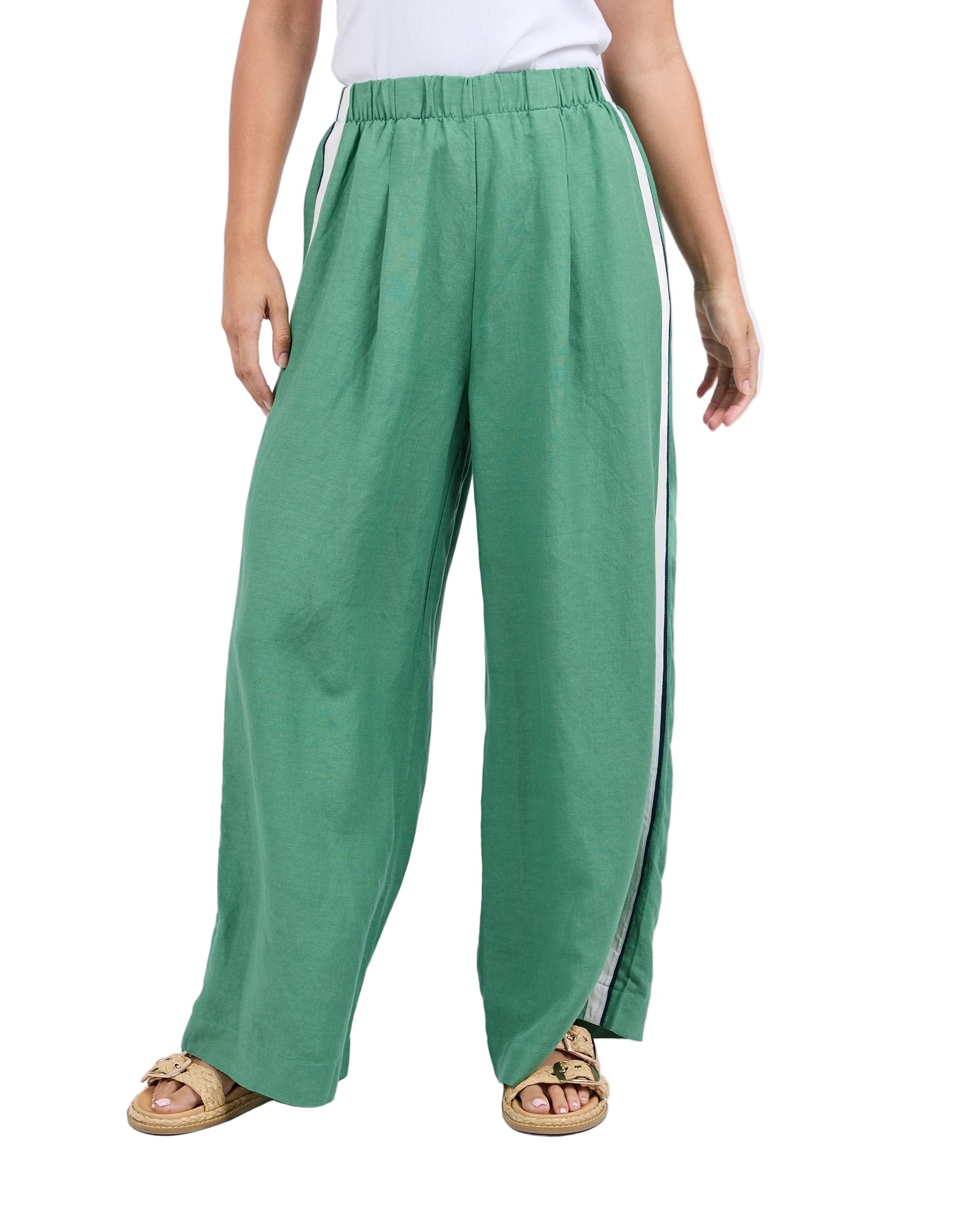 Move with ease in the Elemental Pant. Featuring sleek side tape details, an elastic waist for all-day comfort, handy side pockets, and a wide leg silhouette, these linen blend pants bring sporty style and effortless cool to your everyday look.
